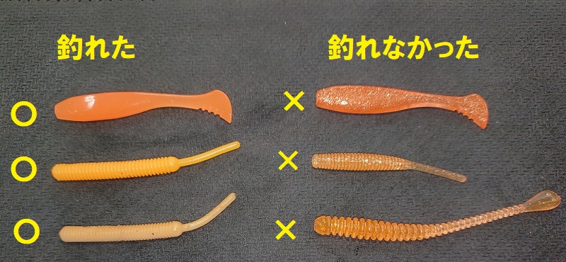 右の、オレンジっぽいカラーには魚が反応しなかった