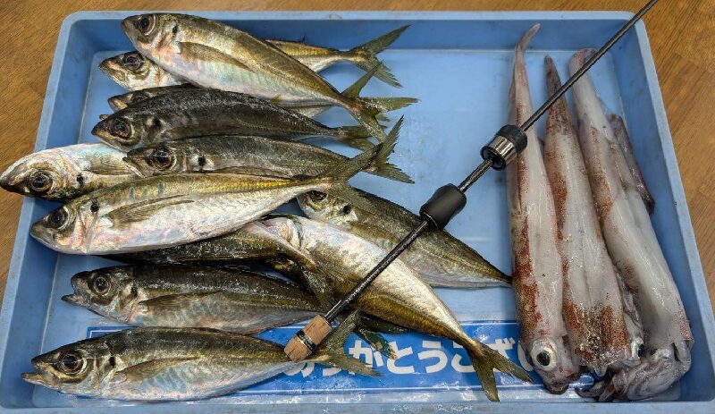 山陰の釣果情報|美保関周辺|アジング・エギング|アジ・ヤリイカ【2026年2月】 釣果情報 2026.02.25 釣具のタイムにお持ち込みいただいたお客様情報です。ありがとうございます。 【日付】2月22日(火曜日) 【お名前】カプチーノ様 【魚種】アジ・ヤリイカ 【サイズ】20cm前後 【釣場】美保関周辺 【釣り方】アジング・エギング いつもお持ち込みありがとうございます アジングをメインでしているとイカが回って来たのでエギを投げて釣られたそうです 使用したエギはタイムオリジナルのコウイカドロッパーのレッドヘッドです またのお持ち込みお待ちしております タイム総社店 ==========