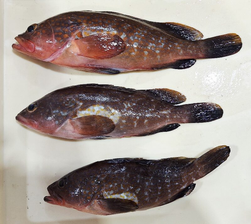 青虫をエサにした、ぶっこみ釣りでのアコウの釣果です。