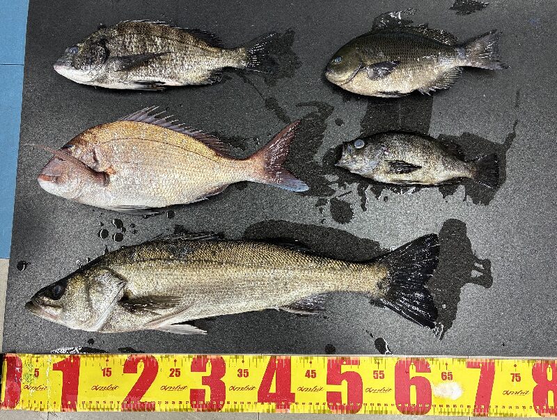 メバルとスズキはウキ釣りで、マダイ、チヌ、グレはフカセ釣りで釣られたそうです。