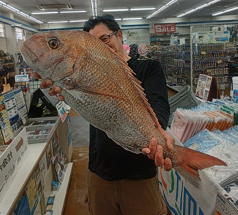 タイラバでのマダイ釣り、70㎝オーバーの特大サイズの持ち込みです